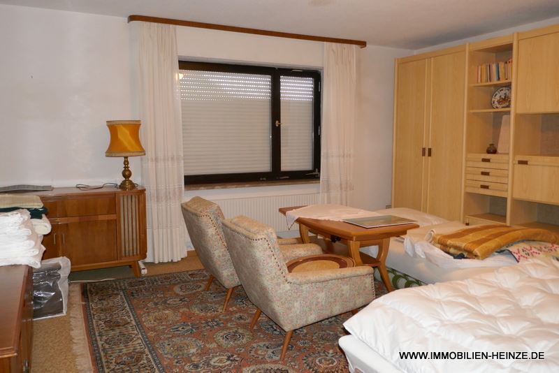 Das große Zimmer im Obergeschoss mit dem Balkon zur Giebelseite eignet sich tatsächlich auch gut als 2. Wohnzimmer mit dem herrlichen Blick in den Garten Richtung Westen und einer stattlichen Raumhöhe von bis zu drei Metern in der Mitte! Eine Einliegerwohnung für weitere Familienmitglieder? Mit Bad und Schlafzimmer!